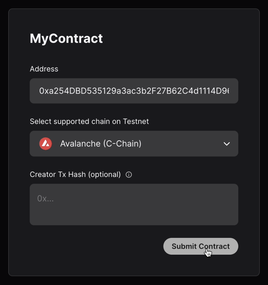 ### API #### `/relay` - Used to manually relay a Warp message. The body of the request must contain the following JSON: ```json { "blockchain-id": "", "message-id": "", "block-num": "" } ``` - If successful, the endpoint will return the following JSON: ```json { "transaction-hash": "" } ``` #### `/relay/message` - Used to manually relay a warp message. The body of the request must contain the following JSON: ```json { "unsigned-message-bytes": "", "source-address": "" } ``` - If successful, the endpoint will return the following JSON: ```json { "transaction-hash": "", } ``` #### `/health` - Takes no arguments. Returns a `200` status code if all Application Relayers are healthy. Returns a `503` status if any of the Application Relayers have experienced an unrecoverable error. Here is an example return body: ```json { "status": "down", "details": { "relayers-all": { "status": "down", "timestamp": "2024-06-01T05:06:07.685522Z", "error": "" } } } ``` ## Testing ### Unit Tests Unit tests can be ran locally by running the command in the root of the project: ```bash ./scripts/test.sh ``` If your temporary directory is not writable, the unit tests may fail with messages like `fork/exec /tmp/go-build2296620589/b247/config.test: permission denied`. To fix this, set the `TMPDIR` environment variable to something writable, for example `export TMPDIR=~/tmp`. ### E2E Tests To run the E2E tests locally, you'll need to install Gingko following the instructions [here](https://onsi.github.io/ginkgo/#installing-ginkgo). Run the tests using the dedicated script: ```bash ./scripts/e2e_test.sh ``` To run a specific E2E test, specify the environment variable `GINKGO_FOCUS`, which will then look for [test descriptions](https://github.com/ava-labs/icm-services/blob/main/relayer/tests/e2e_test.go#L68) that match the provided input. For example, to run the `Basic Relay` test: ```bash GINKGO_FOCUS="Basic" ./scripts/e2e_test.sh ``` The E2E tests use the `TeleporterMessenger` contract deployment transaction specified in the following files: - `tests/utils/UniversalTeleporterDeployerAddress.txt` - `tests/utils/UniversalTeleporterDeployerTransaction.txt` - `tests/utils/UniversalTeleporterMessagerContractAddress.txt` To update the version of Teleporter used by the E2E tests, update these values with the latest contract deployment information. For more information on how to deploy the Teleporter contract, see the [Teleporter documentation](https://github.com/ava-labs/icm-contracts/tree/main/utils/contract-deployment). ### Generate Mocks [Gomock](https://pkg.go.dev/go.uber.org/mock/gomock) is used to generate mocks for testing. To generate mocks, run the following command at the root of the project: ```bash go generate ./... ``` ### Generate Protobuf Files [buf](https://github.com/bufbuild/buf/) is used to generate protobuf definitions for communication with the [Decider service](https://github.com/ava-labs/icm-services/blob/main/proto/decider/decider.proto). If you change any of the protobuf definitions you will have to regenerate the `.go` files. To generate these files, run the following command at the root of the project: ```bash ./scripts/protobuf_codegen.sh ``` ### Generate Abi Bindings [subnet-evm](https://github.com/ava-labs/subnet-evm/tree/6e67777132dd7d0d556e1e34d68ad8e27b22ebef/cmd/abigen) is used to generate abi binding `.go` files for solidity contracts. If you change any of the smart contracts, you will have to update the abi bindings. To generate these files, run the following command at the root of the project: ```bash ./scripts/abi_bindings.sh ``` # ICM Contract Addresses (/docs/cross-chain/icm-contracts/addresses) --- title: ICM Contract Addresses --- ## Deployed Addresses | Contract | Address | Chain | | --------------------- | ---------------------------------------------- | ------------------------ | | `TeleporterMessenger` | **0x253b2784c75e510dD0fF1da844684a1aC0aa5fcf** | All chains, all networks | | `TeleporterRegistry` | **0x7C43605E14F391720e1b37E49C78C4b03A488d98** | Mainnet C-Chain | | `TeleporterRegistry` | **0xF86Cb19Ad8405AEFa7d09C778215D2Cb6eBfB228** | Fuji C-Chain | 1. Using [Nick's method](https://yamenmerhi.medium.com/nicks-method-ethereum-keyless-execution-168a6659479c#), `TeleporterMessenger` deploys at a universal address across all chains, varying with each ICM contracts Major release. **Compatibility exists only between same versions of `TeleporterMessenger` instances.** See [ICM Contract Deployment](https://github.com/ava-labs/teleporter/blob/main/utils/contract-deployment/README.md) and [Deploy ICM Contracts to a Subnet](https://github.com/ava-labs/teleporter/tree/main?tab=readme-ov-file#deploy-teleporter-to-a-subnet) for more details. 2. `TeleporterRegistry` can be deployed to any address. See [Deploy TeleporterRegistry to a Subnet](https://github.com/ava-labs/teleporter/blob/main/README.md#deploy-teleporter-to-a-subnet) for details. The table above enumerates the canonical registry addresses on the Mainnet and Fuji C-Chains. ## A Note on Versioning Release versions follow the [semver](https://semver.org/) convention of incompatible Major releases. A new Major version is released whenever the `TeleporterMessenger` bytecode is changed, and a new version of `TeleporterMessenger` is meant to be deployed. Due to the use of Nick's method to deploy the contract to the same address on all chains (see [ICM Contract Deployment](https://github.com/ava-labs/teleporter/blob/main/utils/contract-deployment/README.md) for details), this also means that new release versions would result in different ICM contract addresses. Minor and Patch versions may pertain to contract changes that do not change the `TeleporterMessenger` bytecode, or to changes in the test frameworks, and will only be included in tags. # Teleporter CLI (/docs/cross-chain/icm-contracts/cli) --- title: "Teleporter CLI" description: "The CLI is a command line interface for interacting with the Teleporter contracts." edit_url: htt